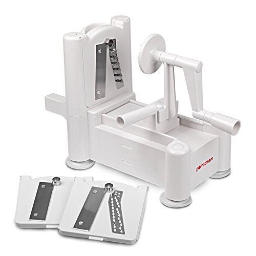 Spiral Cutter , PomStream™ Ultimate Tri-Blade Vegetable and Fruit Peeler Spiral Cutter – Includes Three interchangeable blades for different vegetable designs - Create Healthy Gourmet Meals with Zero Risk.