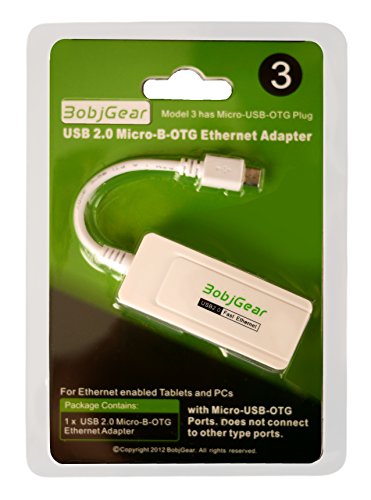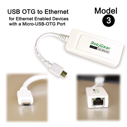 BobjGear Micro-USB-OTG to RJ45 Compact Fast Ethernet Adapter for Android Tablets, and Windows Tablets with Micro-USB; BobjGear One Year Limited Warranty, Model 3 (Micro-USB-OTG plug)