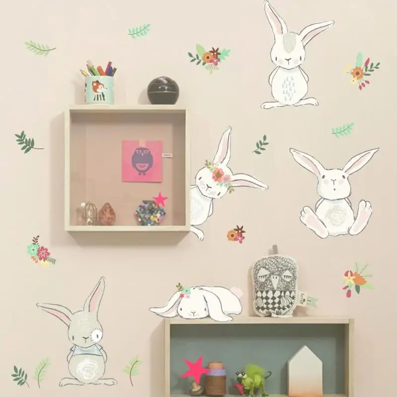 Cute Rabbit Wall Stickers Kindergarten Layout Children Room Environment Decor Removable Wall Stickers Diy Home Decorations A20