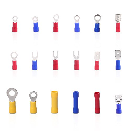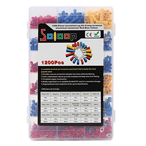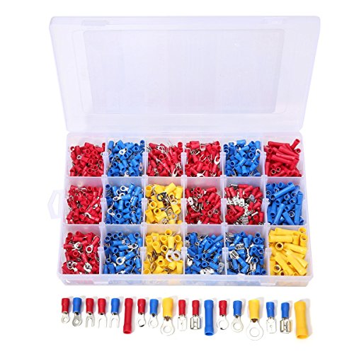 【MULTIPLE SIZES】Package comes with 1200 insulated terminals and connectors with three different colors (red, blue, yellow) as well as a detailed chart for easy identification or for different purposes of use, ring terminals for automotive battery wiring, and other for home use.