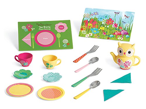 Tea for two? don't mind if I do. The welliewishers' tea set is made for make-believe. It includes an adorable yellow teapot in the shape of an owl, plus playfully mismatched place settings: two plates, two cups and saucers, two Forks and spoons, two folded napkins, and two colorful placemats.