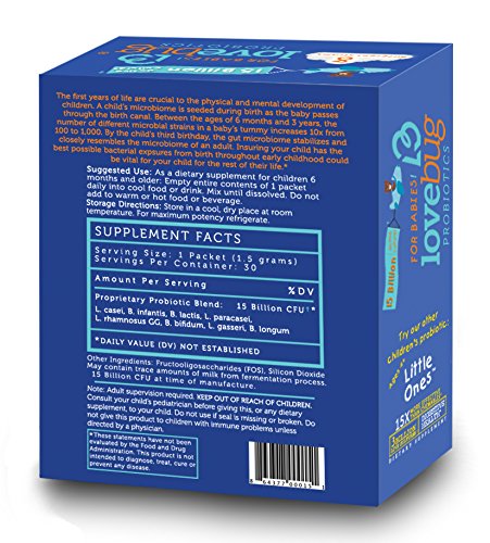 -. Title : LoveBug Probiotics ♥︎ Tiny Tummies - Probiotic for Babies 6 months to 4 years. 30 Day Supply of 15 Billion CFU Probiotic Powder Packets
