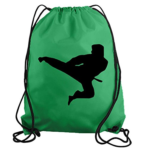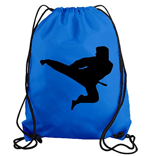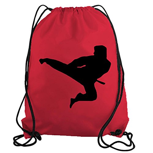 Product Description Karate Kick Drawstring Gym Bag nylon workout bag by Stickerslug. Material is comprised of 100% nylon. Several color options available to select from. 0