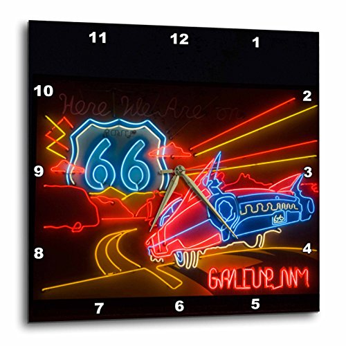 Route 66 Neon sign - Gallup Chamber of Commerce - US32 TDR0060 - Trish Drury Wall Clock is a wonderful complement to any room in your home or office Made of durable high grade aluminum This frameless clock has a high gloss mirror like, UV coated, scratch resistant finish and is suitable for a moist environment Sizes available range from 10" x 10" to 15" x 15" Requires one AA battery; not included Battery box is not covered.Feature