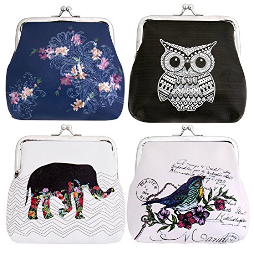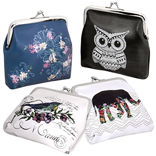 BMC 4 pack Womens Various Design 4 inch Coin Wallet Purse Pouch