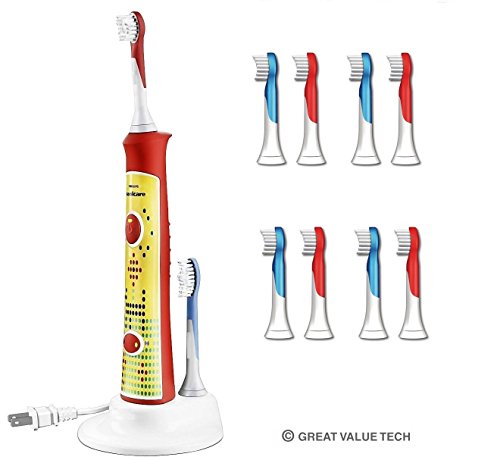-. Feature : 12 Compact Size Kids Replacement Heads that are designed for 7 years and younger / Rubberized covering around the brush head / Soft bristles for gentle brushing, Superior cleaning in seconds / Great Value Tech is a Soni-PRO Product - Please by aware this product is not manufactured by Philips SoniCare / For best results, a new brush head is recommended every three months.