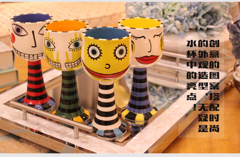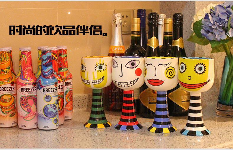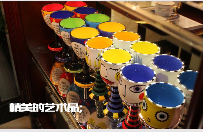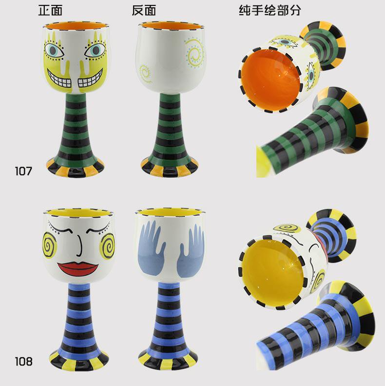 彩绘马克杯红酒香槟杯淇淋高脚杯咖啡水杯 个性创意陶瓷杯子