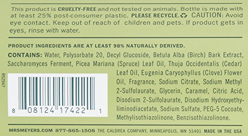 -. Binding : Health and Beauty -. Brand : Mrs. Meyer's Merge -. EAN : 0808124174245 -. Feature : Available for a limited time only / Made in the usa / Free of animal-derived ingredients and not tested on animals / Made with essential oils and plant-derived ingredients -. IsAdultProduct : 0 -. Label : SC JOHNSON -. LegalDisclaimer : Actual product packaging and materials may contain more and different information than what is shown on our website. We recommend that you do not rely solely on the information presented and that you always read labels, warnings, and directions before using or consuming a product. Please see our full disclaimer below. -. Manufacturer : SC JOHNSON -. MPN : 808124174245 -. NumberOfItems : 1 -. PackageQuantity : 1 -. PartNumber : 808124174245 -. ProductGroup : Health and Beauty -. ProductTypeName : HEALTH_PERSONAL_CARE -. PublicationDate : 2016-09-13 -. Publisher : SC JOHNSON -. ReleaseDate : 2016-09-13 -. Size : 16 FZ -. Studio : SC JOHNSON -. Title : Mrs. Meyer's Merge Multi-Surface Everyday Cleaner, Iowa Pine, 16 Ounce -. UPC : 808124174245