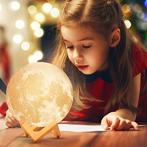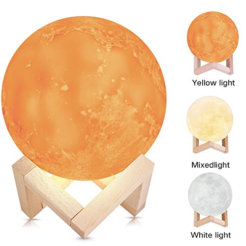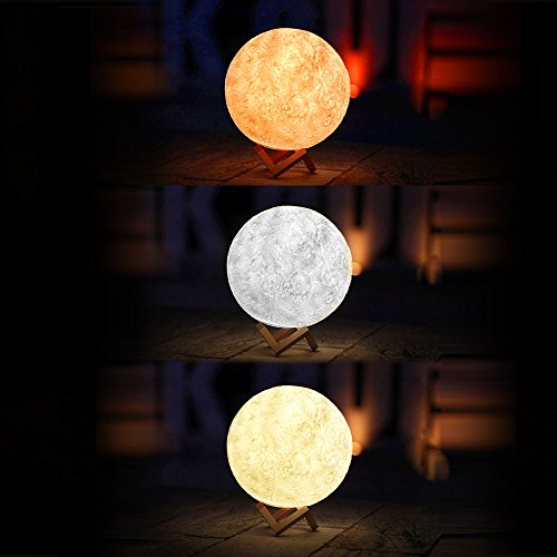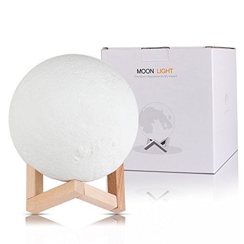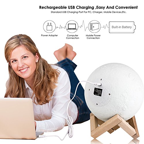 -. Feature : ✿ 3D TECHNOLOGY -- To adopt advanced technology of 3D printing, create with real texture similar to the surface of the moon, built-in rechargeable lithium battery , with LED three-color lighting effects, as if you took a real moon, bring you immersive feel. / ✿ BEAUTIFUL-DESIGN--Perfect combination of lunar light and three-dimensional wooden stents adds mystery and romance to your life. Brilliant lighting is suitable for a variety of occasions, the ideal creative decoration, suitable for small study, Christmas decorations, courtyard, table, path, party, coffee shop, bar, etc., can build a good warm atmosphere than you expect. / ✿ THREE LIGHT COLOR-- the moon has three colors, respectively white, yellow and mixed color,you can slap the surface of the moon to change the color of the light, when you take the first, the lights light up for white, take the second light turn yellow,under the third taps into a mixed color lamplight, and then shoot, the lights automatically shut down.The lamp contains a matte finish on the outside so the light emitted is not too dark or too bright.wonderful! / ✿ BEST GIFTS--The 5.9-inch lunar lighting is made from non-toxic,odorless and environmentally friendly PVC+ABS materials and also is the best choice for boys, girls, relatives and friends to give gifts. / ✿ CUSTOMER GUARANTEE - Our goal is to provide you with a quality product. We aim to make you happy with your purchase; However, if you're not completely satisfied, then CONTACT US and we will give you refund within 90 days of purchase or replacement.