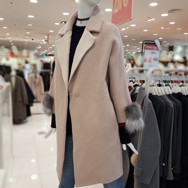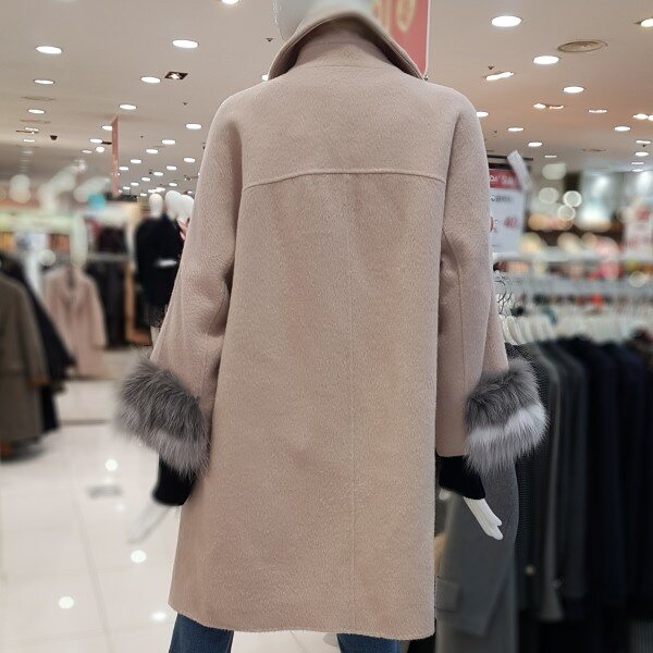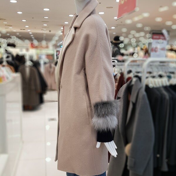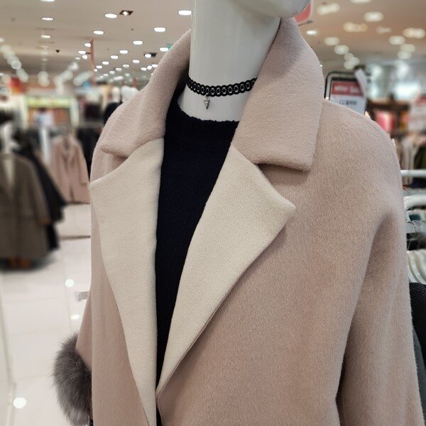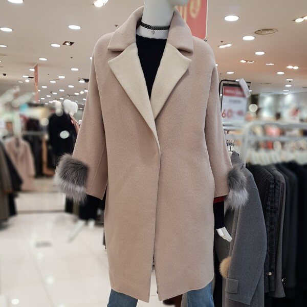 은은한 핑크베이지에 루즈핏코트랍니다알파카혼방에 넘넘 가볍고 따뜻하네요소매폭스퍼장식에 고급스럽구요핸드메이드에 포근포근하답니다여성스럽게 코디 좋으셔요