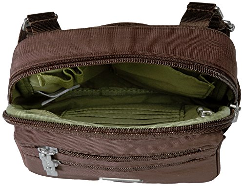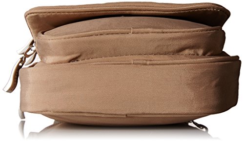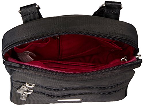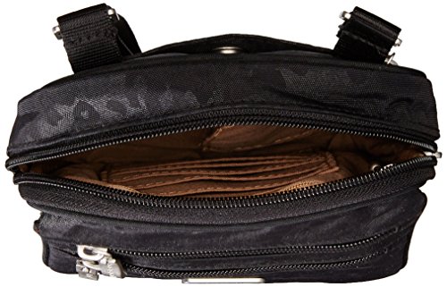 [Description] Cross-body bag with multiple zip pockets featuring two interior compartments and adjustable strap 52`` adjustable strap allows the bag to be carried as a cross-body or shoulder style Pockets: 1 interior slip_ 1 interior zip_ 6 exterior_ 1 ID window_ 5 card slots 6`` x 9`` x 1.5``