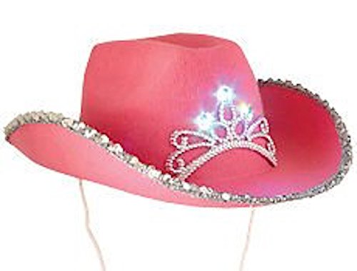 -. Feature : Pink Cowboy blinking hat with Tiara Crown built in / Chid's Size / Great party favor or pageant hat or Costume