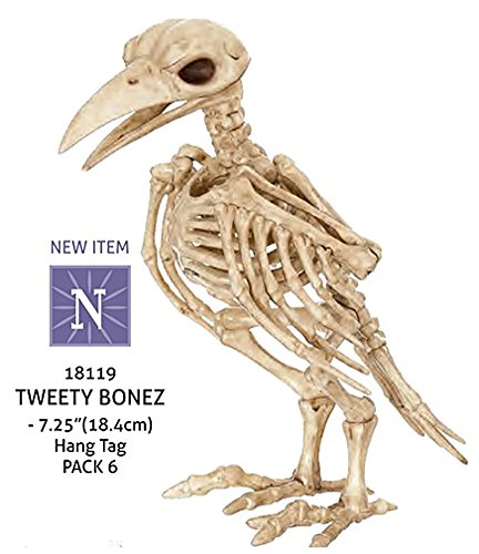 -. Brand : OVOV -. Department : unisex-adult -. Feature : Size: 7.25" tall skeleton raven. / Crafted from durable all-weather plastic. / Moveable head and wings. / Ideal for display on any mantel, table or shelf. / Spooky addition to any halloween scene or decoration. -. ProductGroup : Lawn & Patio -. ProductTypeName : OUTDOOR_LIVING -. Title : OVOV 7.25" Black & White Skeleton Raven