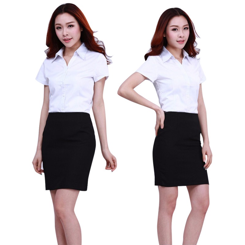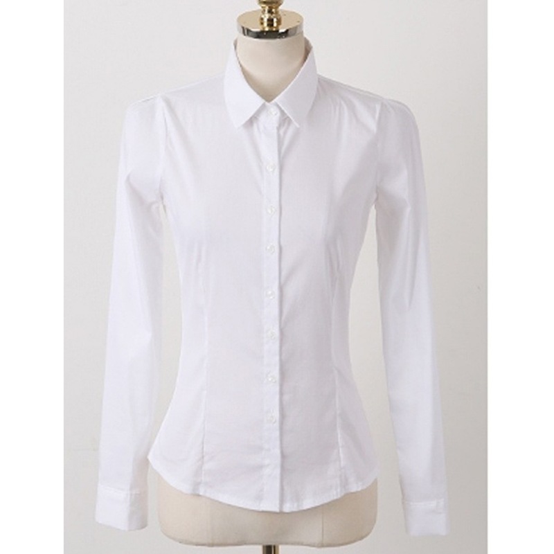 Style: Lady Button Down Lapel Collar T-Shirt Business Formal White Top Blouse