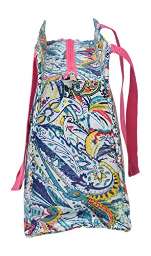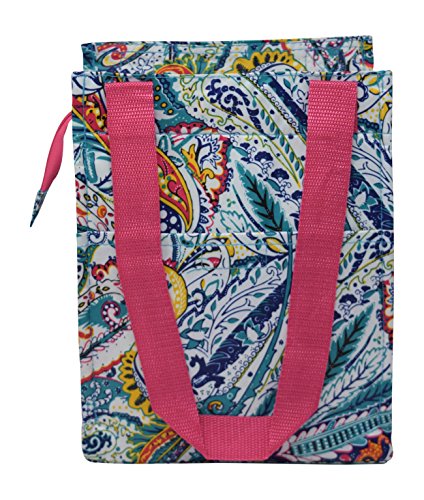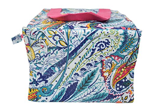 Reusable Zippered Top Insulated Lunch Bag (Colorful Paisley w Pink Strap)