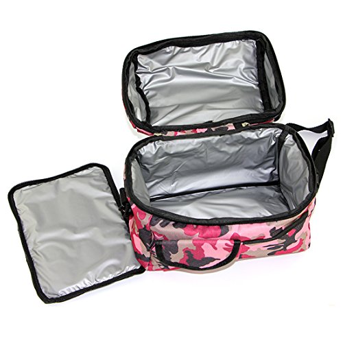 With a handle Strap and adjustable shoulder strap, it is easy to carry; Up and down separate layer design and multi pouchs is convenient for you to distinguish different food