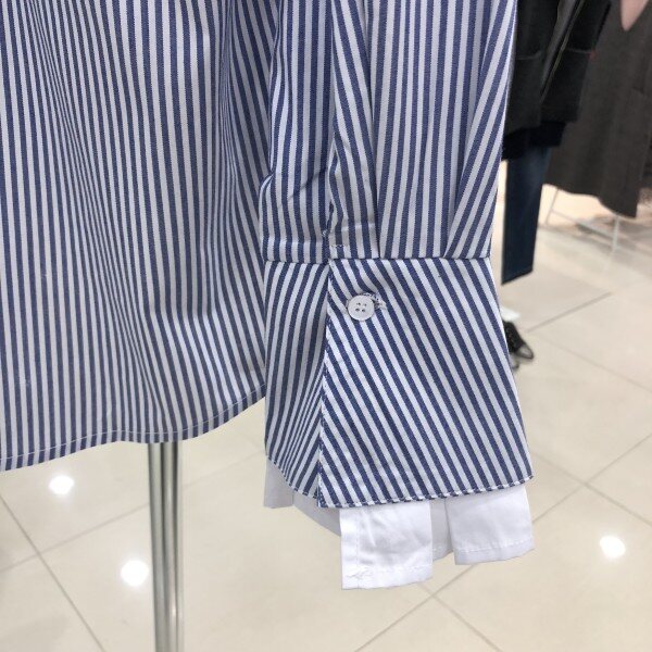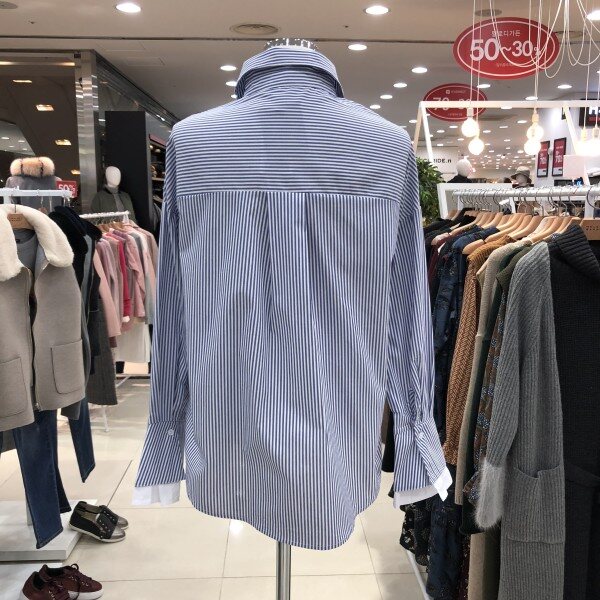 밝은 컬러로 나온 셔츠이며 활동적인 느낌의 코디로 매치가 가능하고 소매가 커프스 형식으로 되어있어 귀여운 느낌도 나는 제품입니다. 셔츠의 재질이 뻣뻣한 편이라 평소 이런 재질의 셔츠를 좋아하는 분들에게 추천합니다.