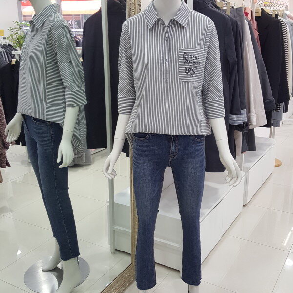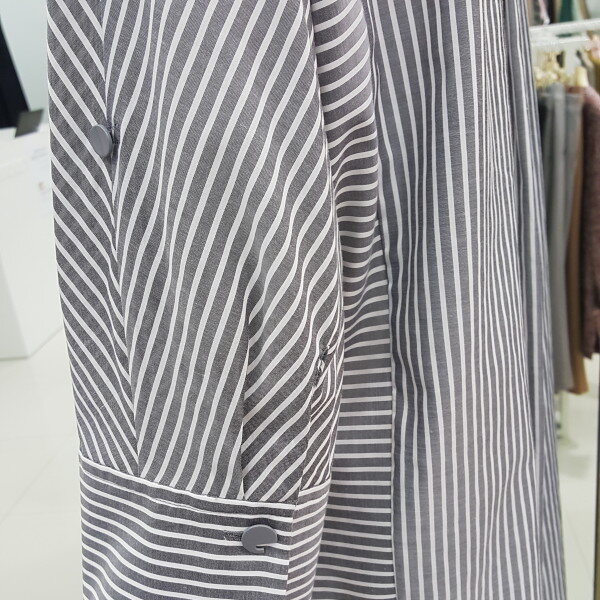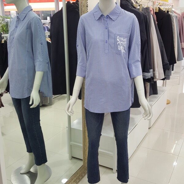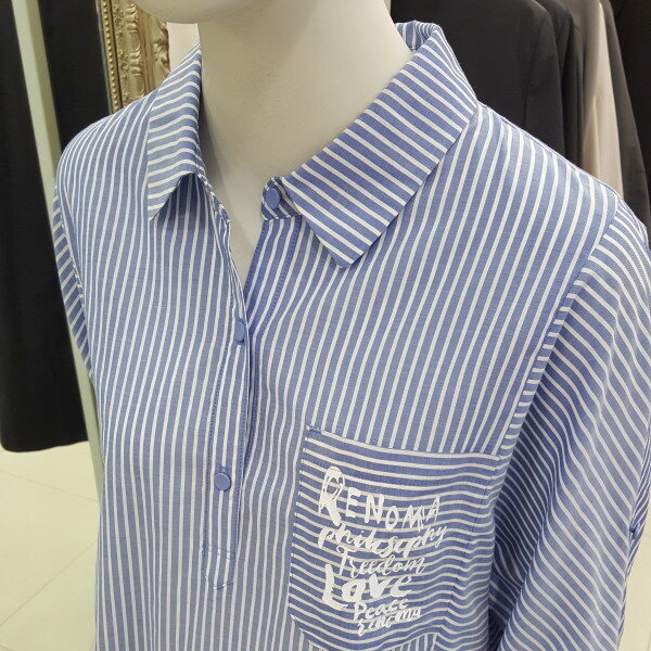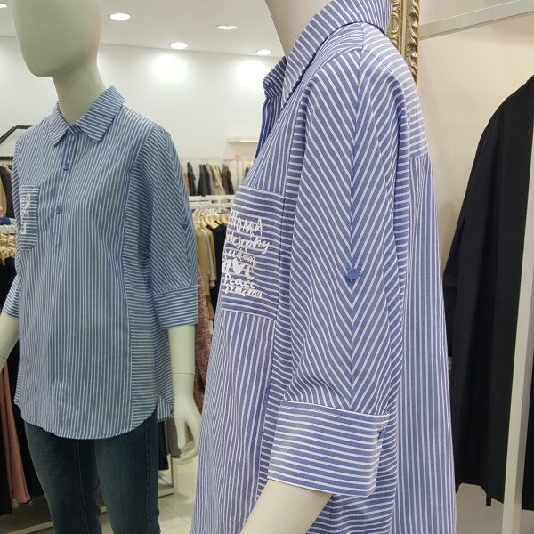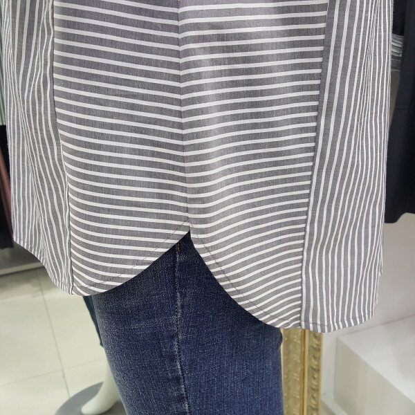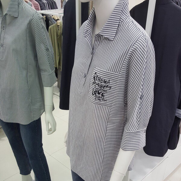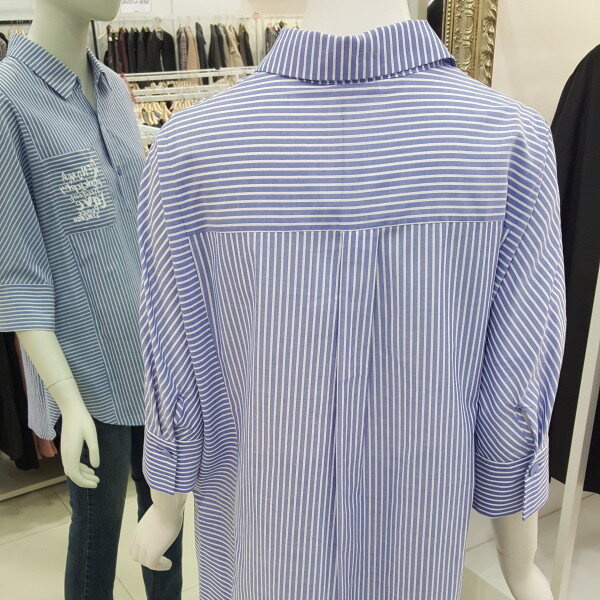시원한 소재감과 베이직한 스트라이프 패턴으로 캐주얼하게입기 좋고 7부소매와 오버핏으로 체형커버에 좋고 편하게 걸치기 좋습니다.