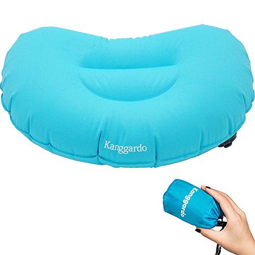 Kanggardo Ultralight Inflating Travel/Camping Pillows-Compressible,Compact,Inflatable,Comfortable,Ergonomic Pillow for Neck & Lumber Support and a Good Night Sleep while Camp,Backpacking,Light Blue