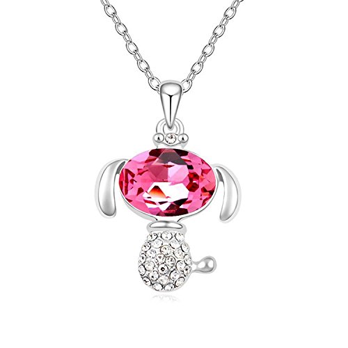 -. Title : Crystal Dog Pendant Necklace 18" (Pink)