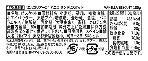 原材料:小麦粉、砂糖、植物油脂、ホエイパウダー、果糖ブドウ糖液糖、全粉乳、食塩、バニラエキス/膨張剤、乳化剤(大豆由来)、香料、カロテン色素