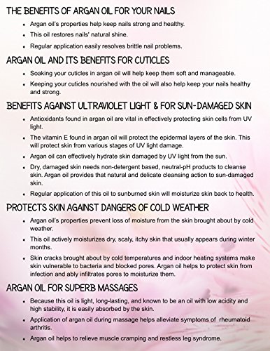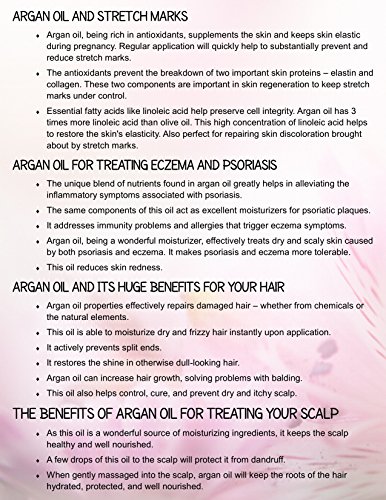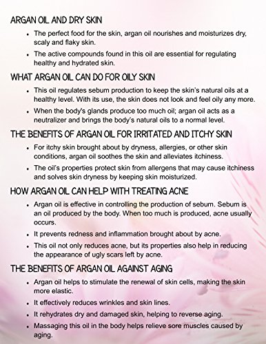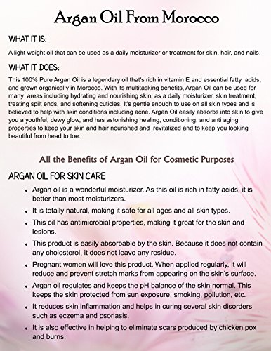 This 100% Pure Argan Oil is a legendary oil that's rich in vitamin E and essential fatty acids, and grown organically in Morocco. With its multitasking benefits, Argan Oil can be used for many areas including hydrating and nourishing skin, as a daily moisturizer, skin treatment, treating spilt ends, and softening cuticles.