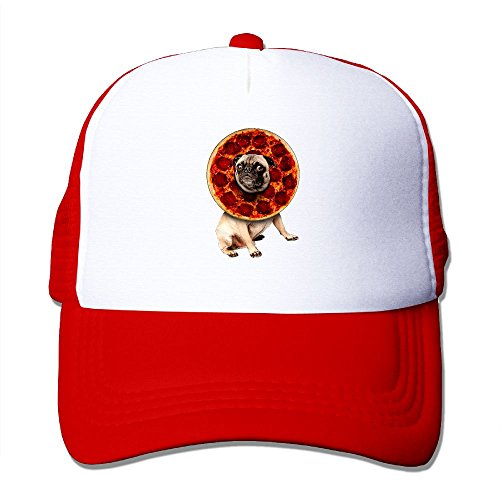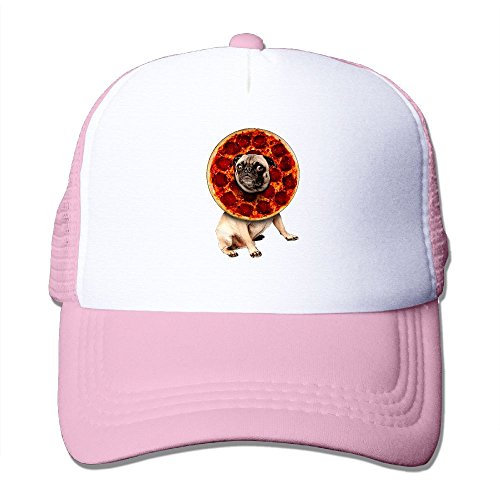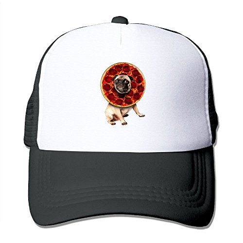 (FUNINDIY)/Accessories/Hats/DIRECT FROM USA/Pizza Pug Trucker Hat Summer Mesh Cap With Adjustable Snapback Strap Black
