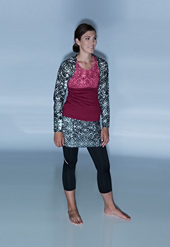 -. Feature : Length (MED): 13 3/8" front, 14 3/8" back / Hi visibility reflective fabric with flyaway P.R.Int that is wind and water resistant / Super lightweight pull-on skirt / Fabric is UV 50+ / Easy stash before and after workout