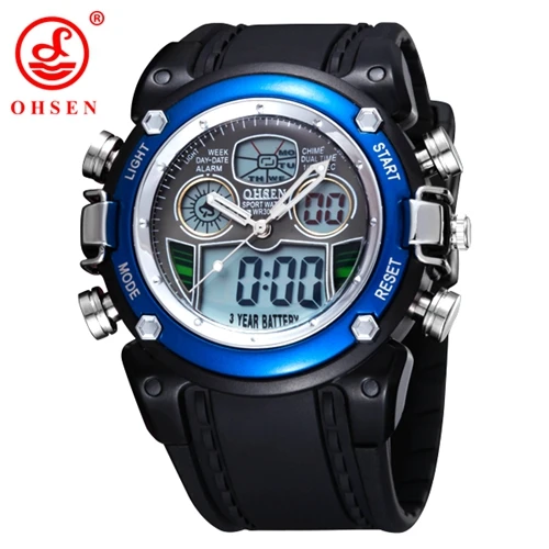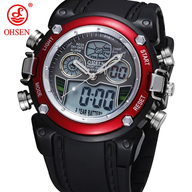| [해외]Ohsen lcd 디지털 석영 소년 남성 패션 시계 손목 시계 relogio masculino 30 메터 다이빙 레드 야외 스포츠 실리콘 시계 선물 |