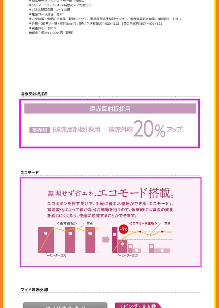 ●業界初「遠赤反射板」採用。赤外線量20%アップ。