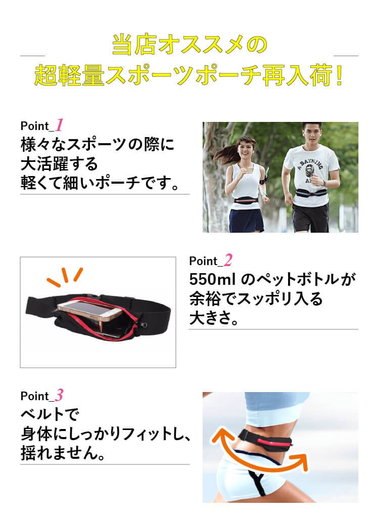 アウトドアに最適!大活躍するスポーツウエストポーチです。 ※万が一、商品使用によりご使用頂いていた機器等に破損や故障などのトラブルが発生致しましてもいかなる場合でも弊社では保証致しかねます。予めご了承の上お買上げくださいませ。 |