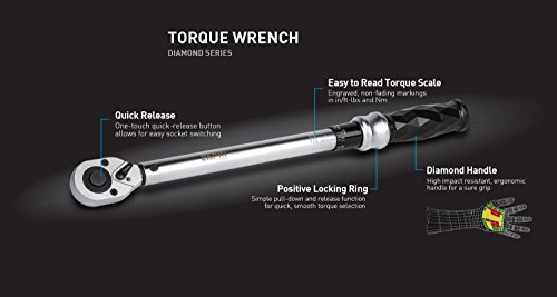Capri Tools 31100 1/4-inch Drive Torque Wrench, 25-250 Inch Pounds, Diamond Ergonomic Grip