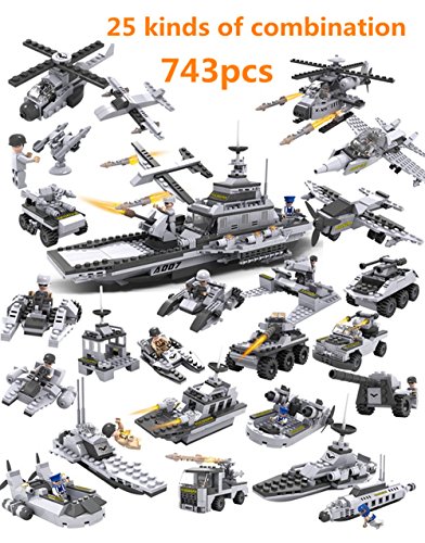 -. Title : S'beauty Military Buildable Toys Construction Bricks Set 743 PCS DIY Assembly Car,Chariot,Aircraft,Submarine,Warship and More for Children and Military Enthusiasts