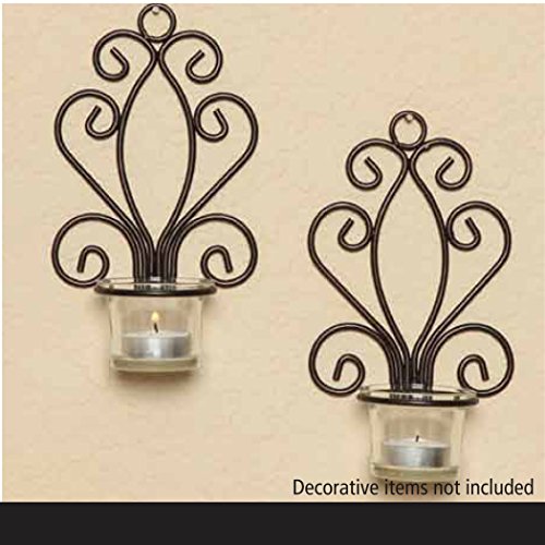 Hosley Set of Two, Iron Wall Sconce, Tea Light Candle Sconces, 7.68" High. Ideal Gift for Spa, Aromatherapy, wedding, Votive Candle Gardens. Hand made by Artisans