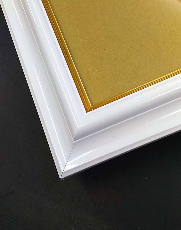 | 金のラインが印象的な白のフレームに縁起物の富士をセット。 |