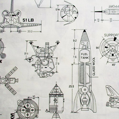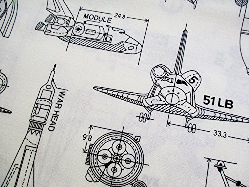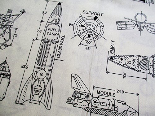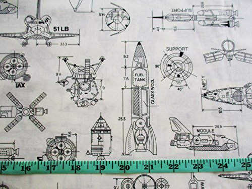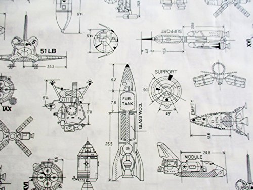 Rocket Adventure in Galaxy Star Jet Aerospace on White Fabric 36 by 36-Inch Wide (1 Yard) (CT684)