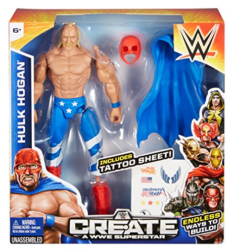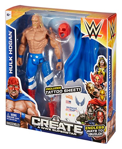 -. Binding : Toy -. Brand : Mattel -. EAN : 0887961152548 -. Feature : Take a WWE Superstar and get him ready for the ring! / Nearly unlimited combinations to create your own WWE Superstar / Mix and match gear, ring attire and body parts / Accessories and gear are compatible with other 6-inch WWE figures / Lots of imaginative play for WWE fans -. IsAdultProduct : 0 -. Label : WWE -. Manufacturer : WWE -. Model : CMD83 -. MPN : CMD83 -. PackageQuantity : 1 -. PartNumber : CMD83 -. ProductGroup : Toy -. ProductTypeName : TOYS_AND_GAMES -. Publisher : WWE -. Studio : WWE -. Title : WWE Create A Superstar Hulk Hogan Figure Pack -. UPC : 887961152548 -. Warranty : 1 year warranty against manufacturer defects