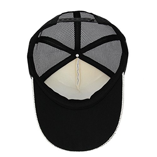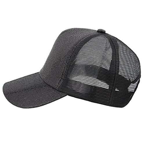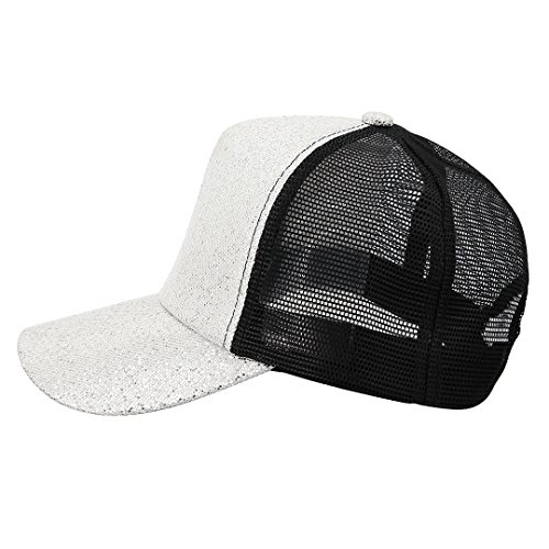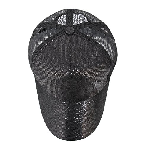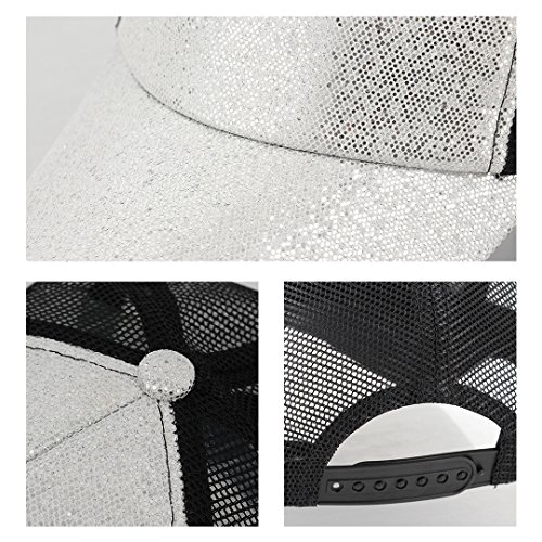 Size:Brim:3.1";High:5";Circumference:19.6-23" (approx);fit for most adult Material:polyester and sequins,durable and lightweight Snap closure Grid design:the back part of the hat is grid ,special and comfortable when you are athletic in summer Adjustable snapback hat,perfect for hip-hop, dancing, rock and funky styles