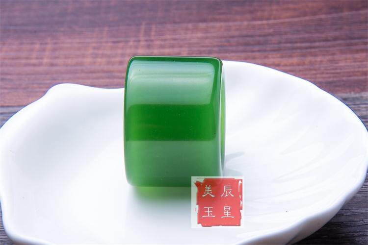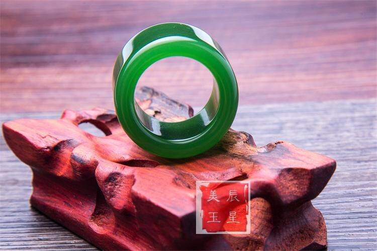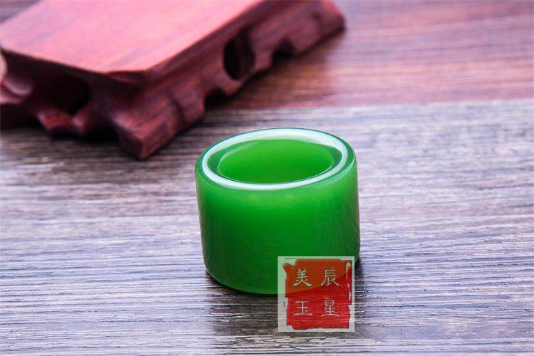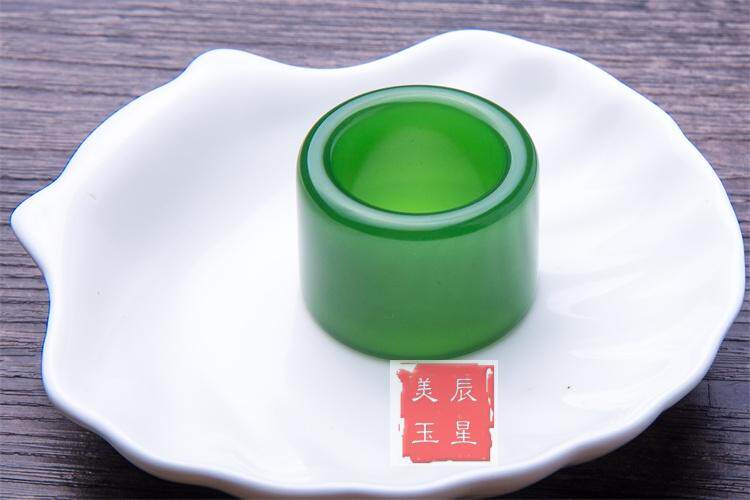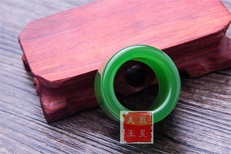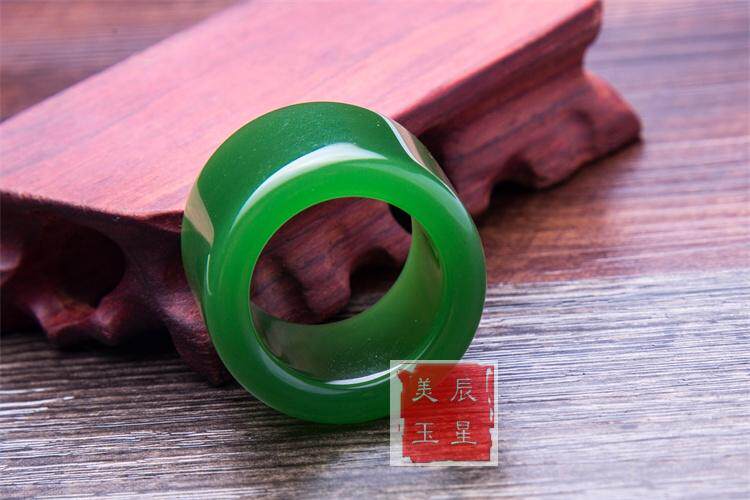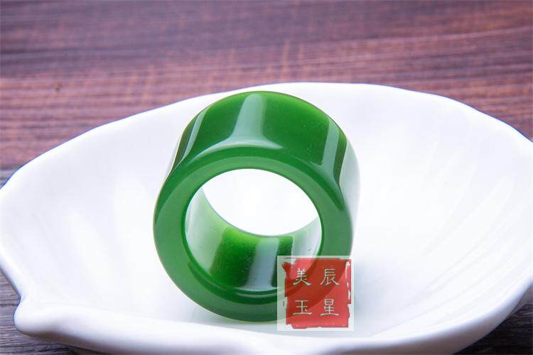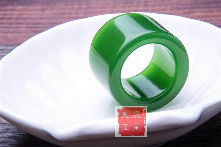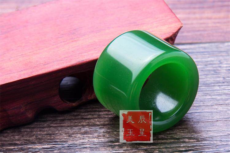 正品和田玉纯天然扳指 新疆原矿和田碧玉扳指 菠菜绿玉戒指指环