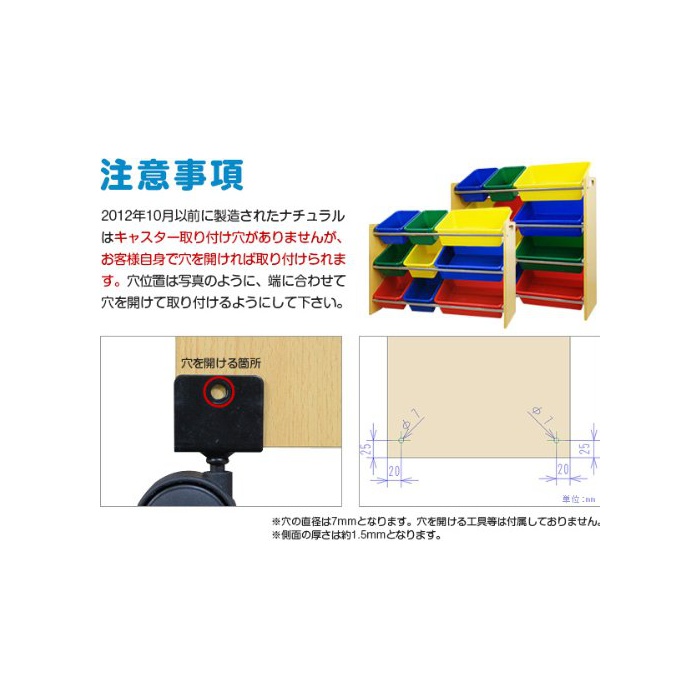 ※2012년 10월 이전에 제조 된 내츄럴은 캐스터 설치혈이 없습니다만,고객 자신에 구멍을 열면 설치됩니다.