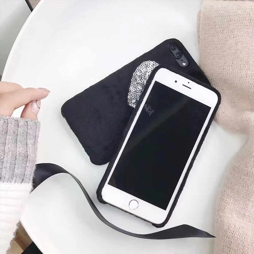 design6:for iphone x 8 8 plus 6plus 6s personal embroidery fur puff case cover