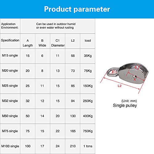 -. Title : BQLZR M25 25mm Swivel Stainless Steel 304 Wire Rope Single-sheaved Pulley Block