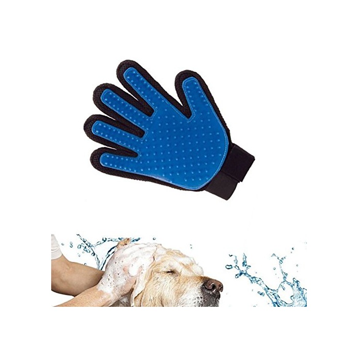 Happon glue 밍 장갑 애완동물 브러시 장갑 개와 고양이용 다섯손가락 타입 손질 맛사지 브러시 글로브 모옥케어 털 잡아 욕실용 조절 가능 오른손 블루