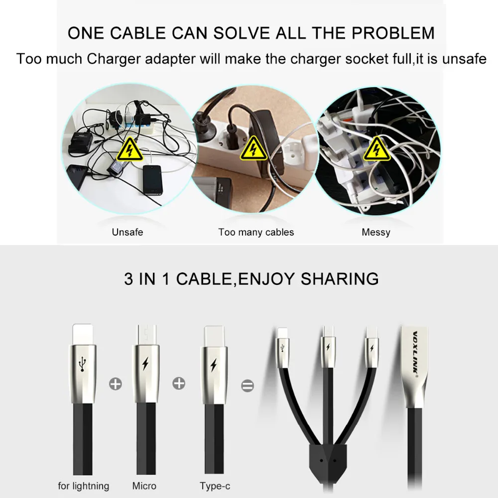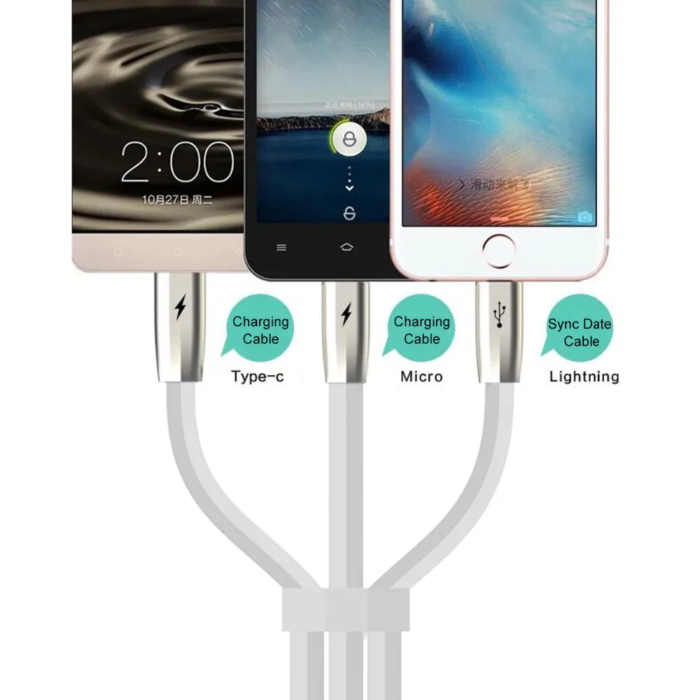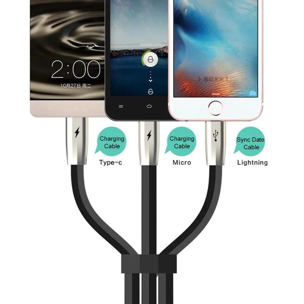 3in1 type B:3 IN 1 USB Cable(Type C+android+8 pin