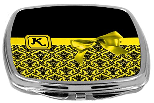 Rikki Knight Letter-K Monogram Damask Bow Design Compact Mirror, Yellow, 2 Ounce