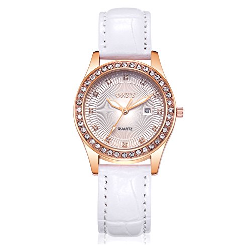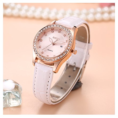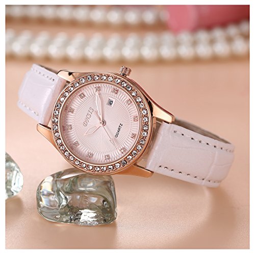 Rose gold round case with stones in bezel.Watch material:PU leather Alloy,Band Length :9.25^^,Case Diameter:1.18^^.