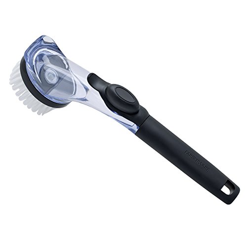 Studio : Farberware Publisher : Farberware Binding : Kitchen Product Description This Farberware Black soap dispensing sink bristle brush is ready to tackle the toughest cleanup jobs. Designed to fit comfortably in the hand, the brush features nylon bristles for performance and durability. A built-in reservoir holds dish detergent, and with the simple push of a button, soap is released into the bristles to remove grease and grime from your dishes. Brush head is removable and replaceable. Dishwasher safe. 0