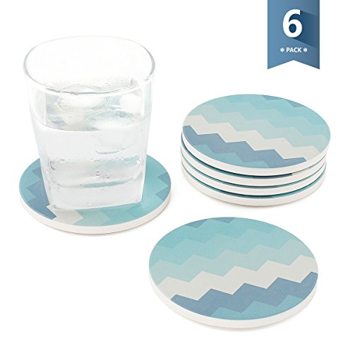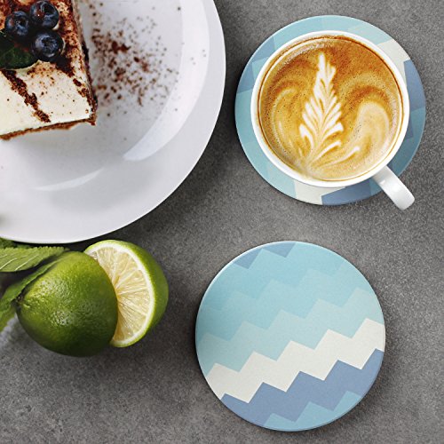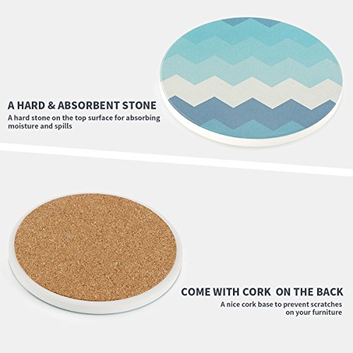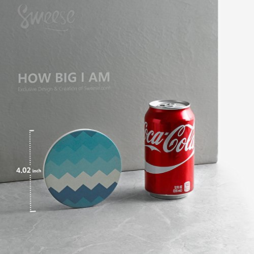 Sweese Drink Coasters with Cork Base - Absorbent Stone Coaster Set - 6 Packs, Round, Blue