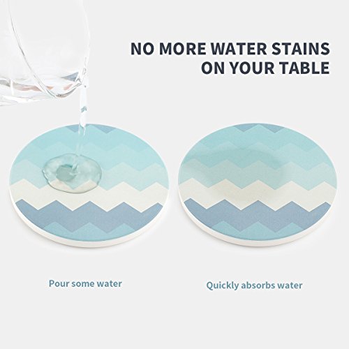 - ABSORB MOISTURE EFFICIENTLY - Ceramic coasters can soak up moisture greatly from the glasses or cups, while they themselves don’t become stained or discolored. They are a game changer. With these, you don’t worry at all about condensation produced by iced liquid as well as minor spills, which puddle on the table and cause water rings.