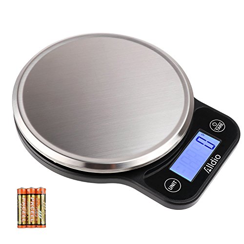 Digital Kitchen Scale, One Touch Unit Switch and Tare Stainless Steel Cooking Food Scales Digital Weight with Large Blue Backlit LCD 1g 0.04oz to 5kg 11lb